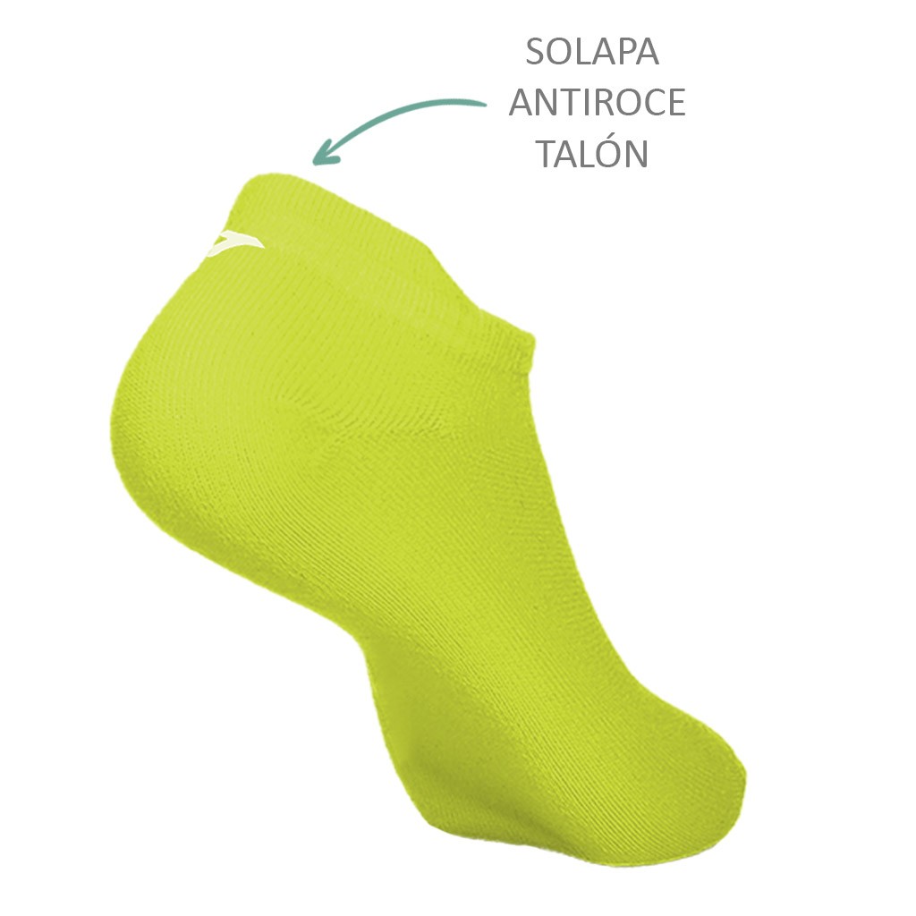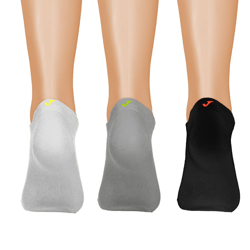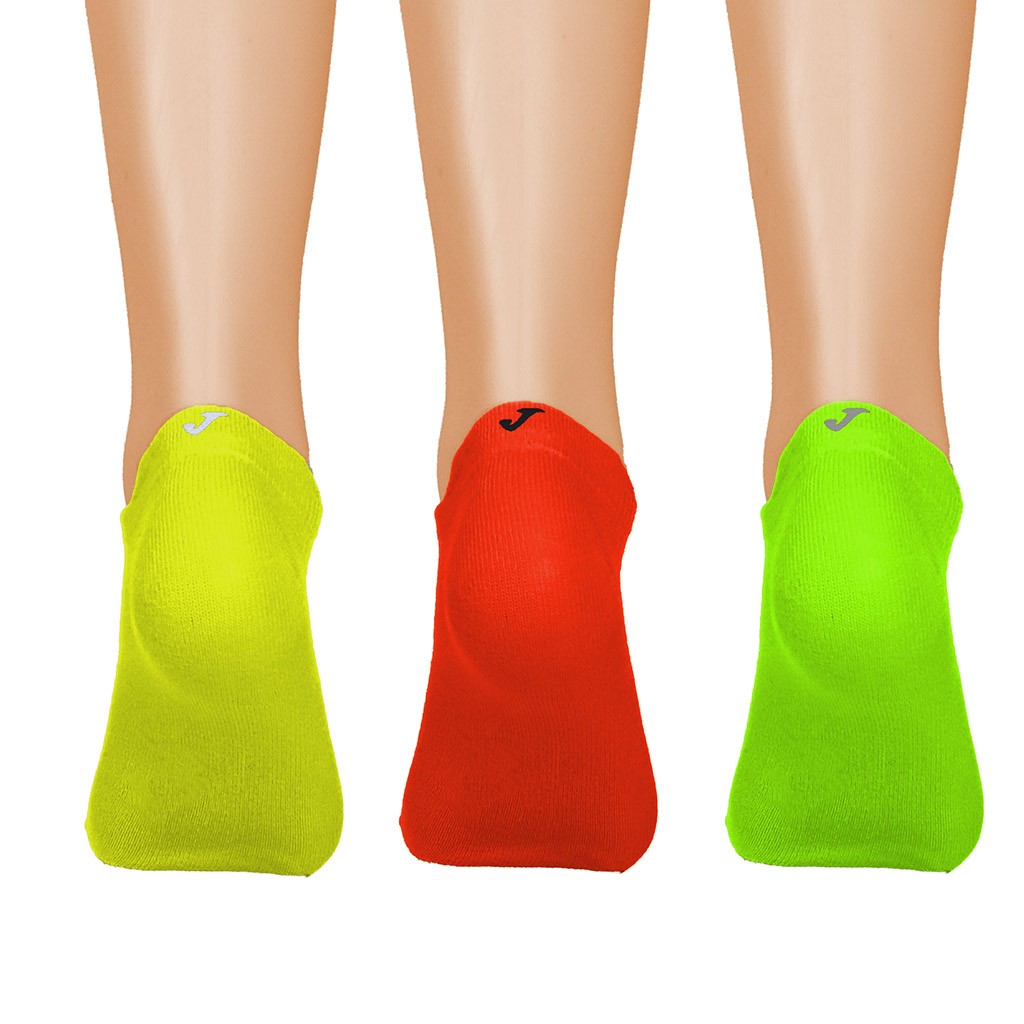 Pack de 3 calcetines para hombre de algodón elástico adpatable, con patrón invisible y talón especial mas alto que evita rozaduras. Linea sport series de Joma. Surtido Flúor en poliamida y surtido clásico en algodón. Dispoble tambien en talla 35-38
