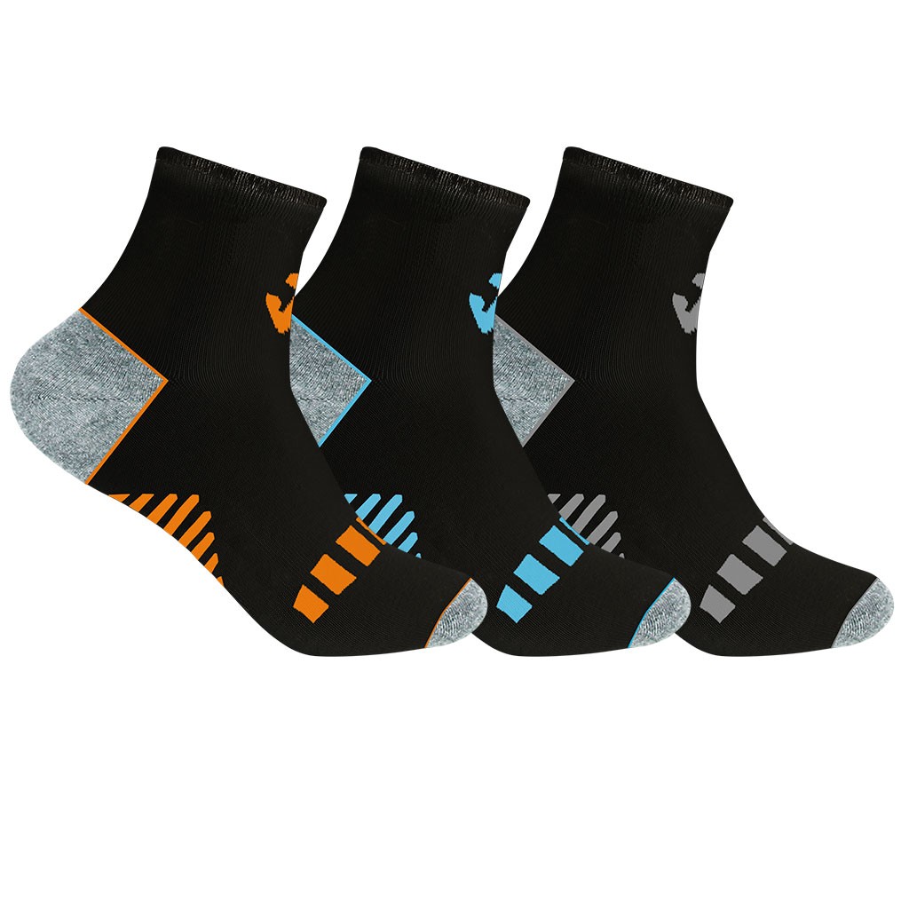 Pack de 3 calcetines tobilleros altos, confeccionado en algodón peinado elástico y reforzados con poliamida para mejor resistencia. Disponible en pack de 3 blancos o pack de 3 negros con talon y puntera a contraste y detalles de colores surtidos.