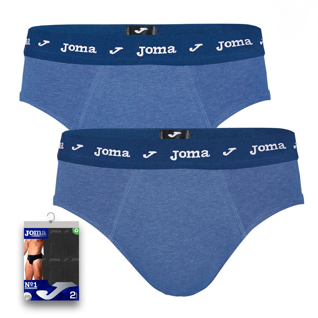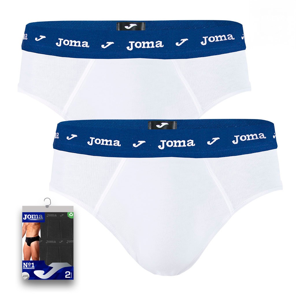 Pack de 2 Slips cerrados de algodón bielástico suave y adpatable. Colores básicos y goma vista con logo personalizado. Se envia en blister de 2 unidades para colgar. Nº1 de ventas con la calidad de JOMA.