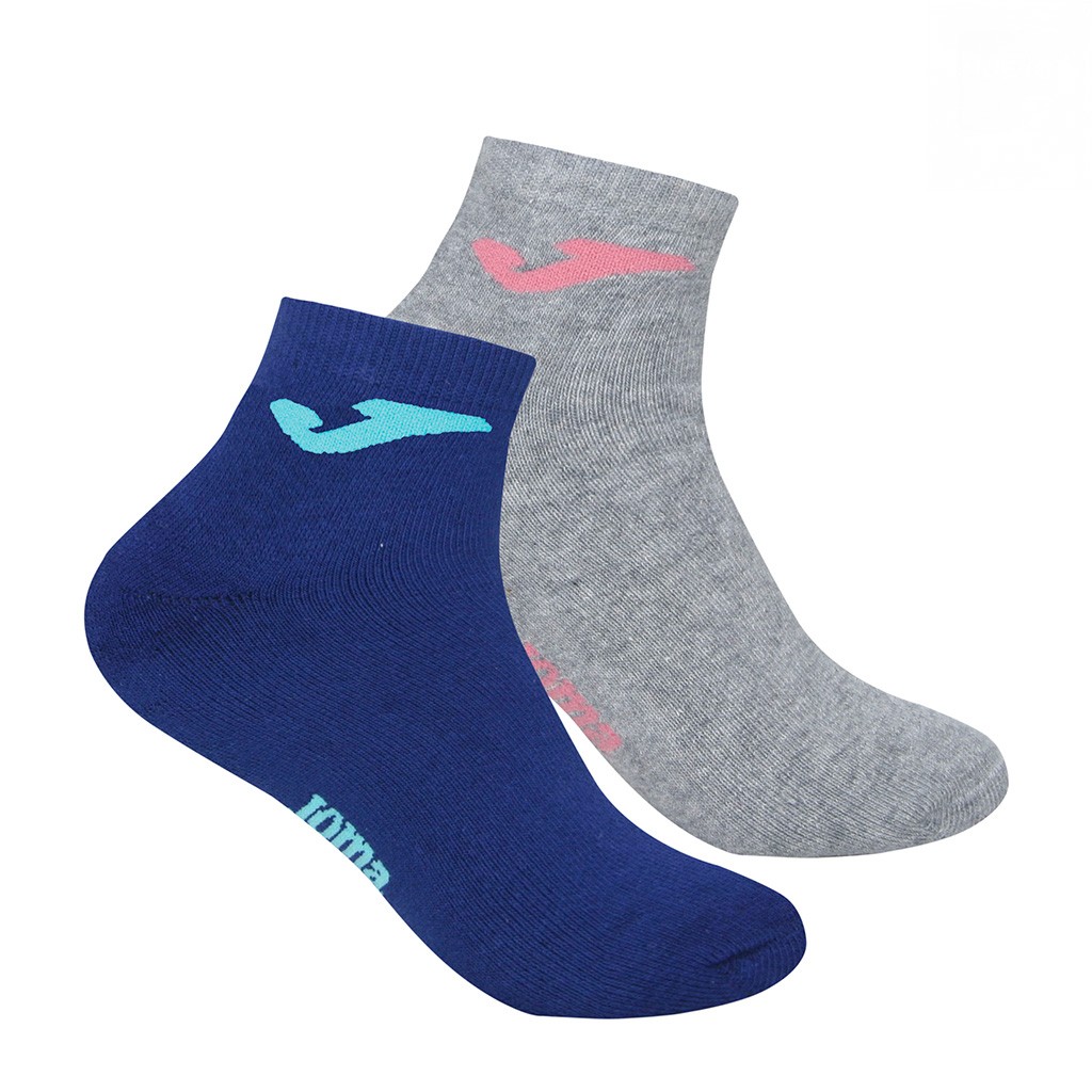 Pack de 2 calcetines tobilleros para mujer confeccionados en algodón con suave rizo interior. Logotipo J en tobillo y JOMA en planta. Disponible en pack 2 negro o surtido gris-marino.